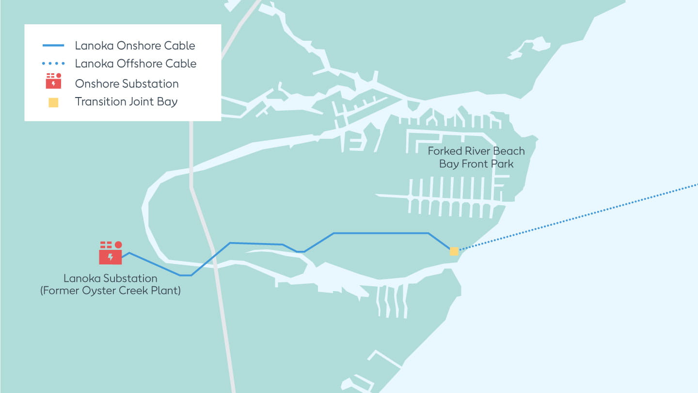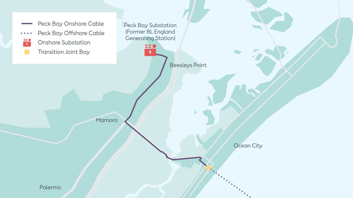 The Peck Bay and Lanoka onshore substations are connected via underground cables to Ørsted’s offshore wind farm, Ocean Wind 1. Starting in fall 2023, we will begin installing the cables and building the onshore substations.