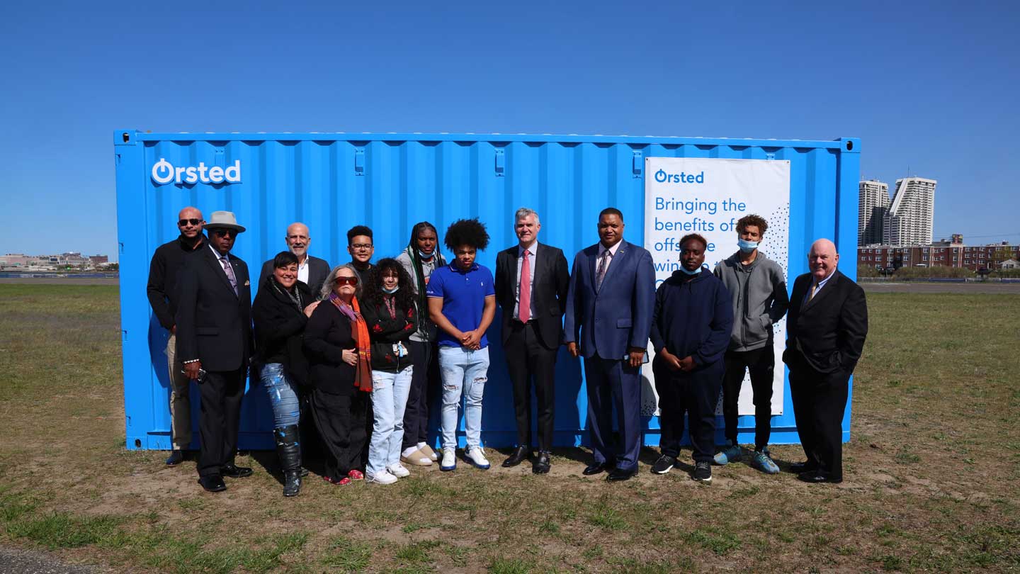Ørsted Offshore North American CEO David Hardy and JINGOLI CEO Joseph R. Jingoli, Jr. recently met with students and leaders from the Atlantic City-based L.I.T (Leaders in Training) program to discuss plans for converting an empty shipping container, primed and painted by the Atlantic City Arts Foundation, into an offshore wind information center. Ørsted, in conjunction with the Casino Reinvestment and Development Authority (CRDA) and JINGOLI, will host a program where L.I.T. students will participate in a 12-week, JINGOLI Competitive Edge, “Live Classroom” training course on offshore wind and construction-related topics. Following the training course, students will apply what they learned to transform an empty shipping container into an informational center.